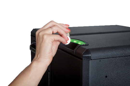 El reciclador de monedas se encarga de las monedas permitiendo que el cajero se centre en los clientes. Su innovador sistema de luces guía ayuda a los clientes a utilizar el reciclador de monedas. Es seguro y está diseñado para emplazarlo en el suelo y soportar operaciones durante 24 horas los 7 días a la semana. Unico cuenta automáticamente las monedas y transfiere la información al software en Cloud.
