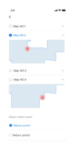Regresa al punto de carga cuando no está en funcionamiento o detecta que la la batería es baja.